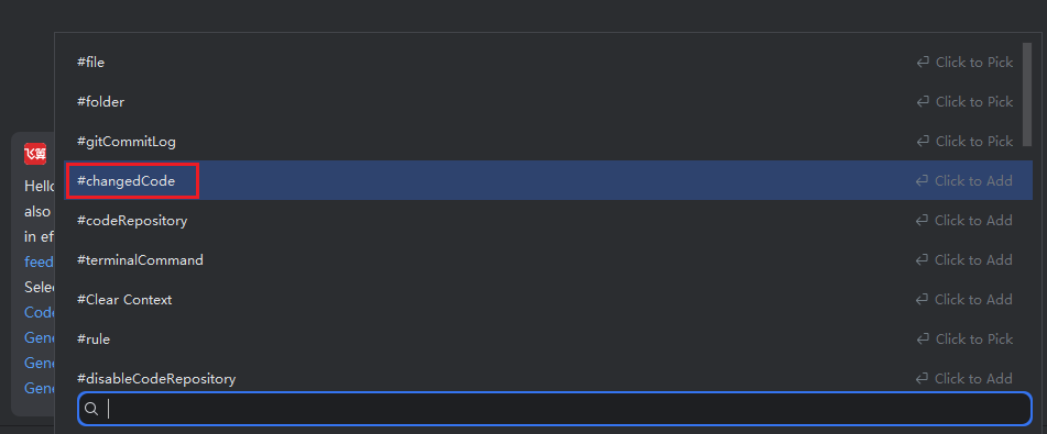 - After modifying a file in the Git staging area, select "Modified Code", then provide your request using structured input.