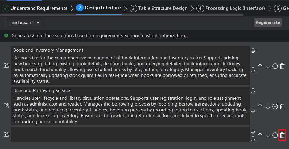 The system intelligently generates efficient API interfaces based on your requirements. If during the review process you find that a particular interface does not need to be created, you can manually delete it.