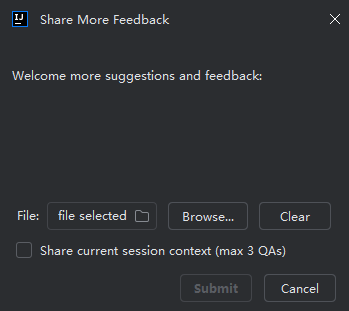 After the source code generation is completed, you can evaluate the current source code task. If the generated source code content meets your requirements, you can give it a like. If it doesn't meet your expectations, you can give it a dislike and submit the reasons why you think it's unsatisfactory. The backend system will collect these reasons and continuously optimize accordingly.