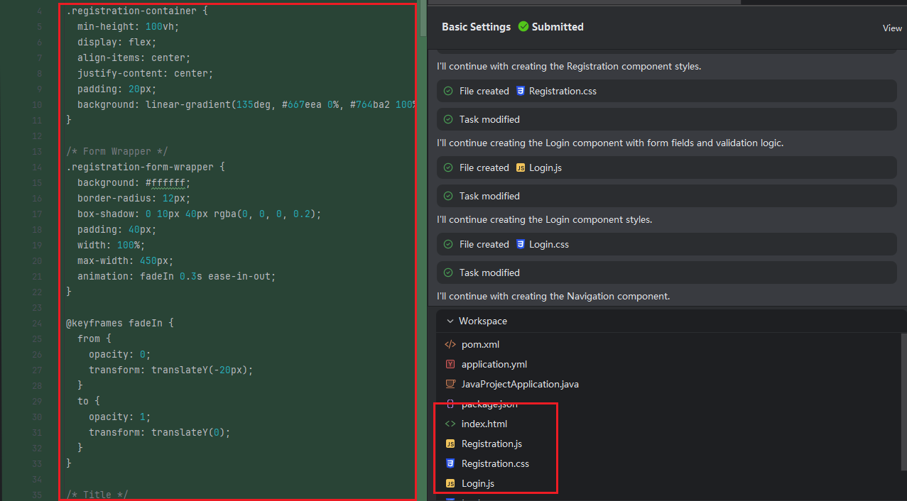 Java Web Project (New Version) supports generating frontend projects. You only need to clearly describe the frontend project requirements in your request. In step 5, you can set the name and generation rules for the frontend project, and the system will automatically generate corresponding frontend code files according to the set rules.