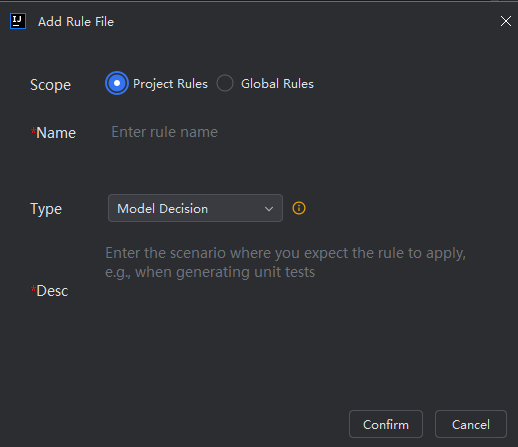 - Model Decision: The model autonomously decides whether to use this rule based on the rule description and requirements, without user selection. Note that rule effectiveness depends on the description content, so please describe clearly.
