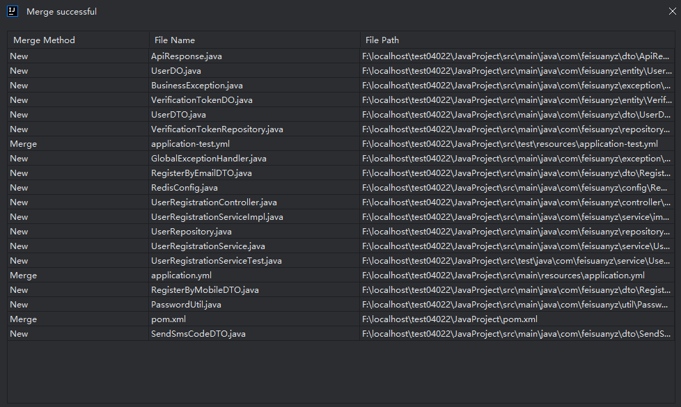 - After merging, the system will automatically merge the files checked for the current module. After successful merging, it displays the merged files and their locations.
