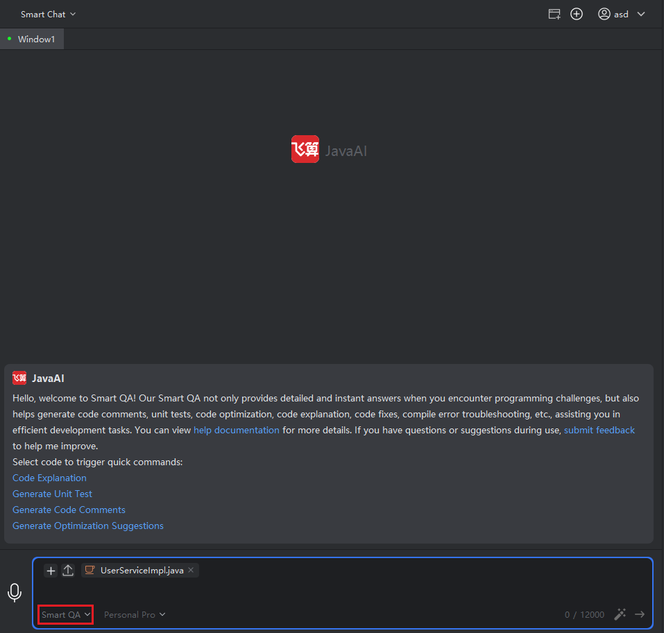 Smart Q&A: When encountering code-related issues during programming, you can get help using FeiSuan JavaAI's Smart Q&A feature. Whether you need code explanations, adding code comments, or generating unit tests, FeiSuan JavaAI can assist. Additionally, when encountering compilation failures and other issues, simply select the corresponding error code or error log information and start a conversation through the FeiSuan JavaAI plugin, providing your problem details.