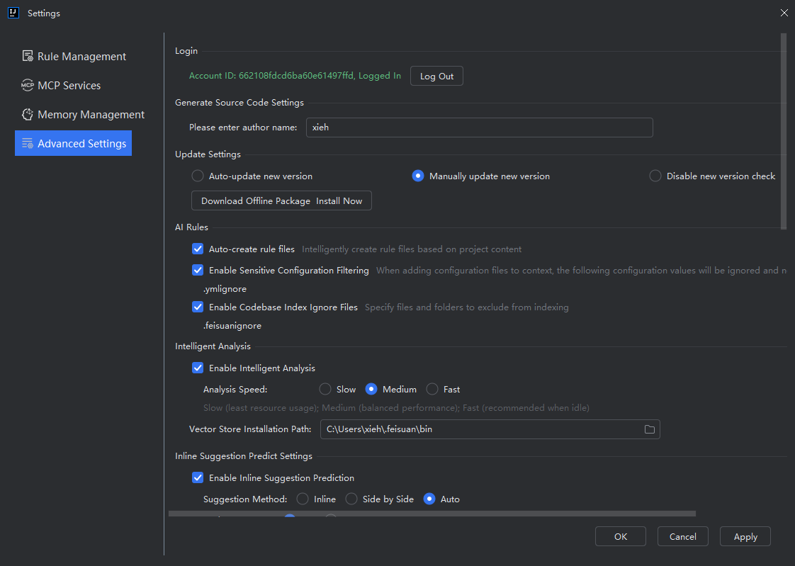 When you have not set up automatic detection of new version updates, after receiving a new version push, you can directly manually download the latest plugin package in advanced settings. After the plugin package is downloaded, it will be installed automatically. After successful installation, you will be prompted to restart the IDEA tool, and you can experience the new version after restarting.