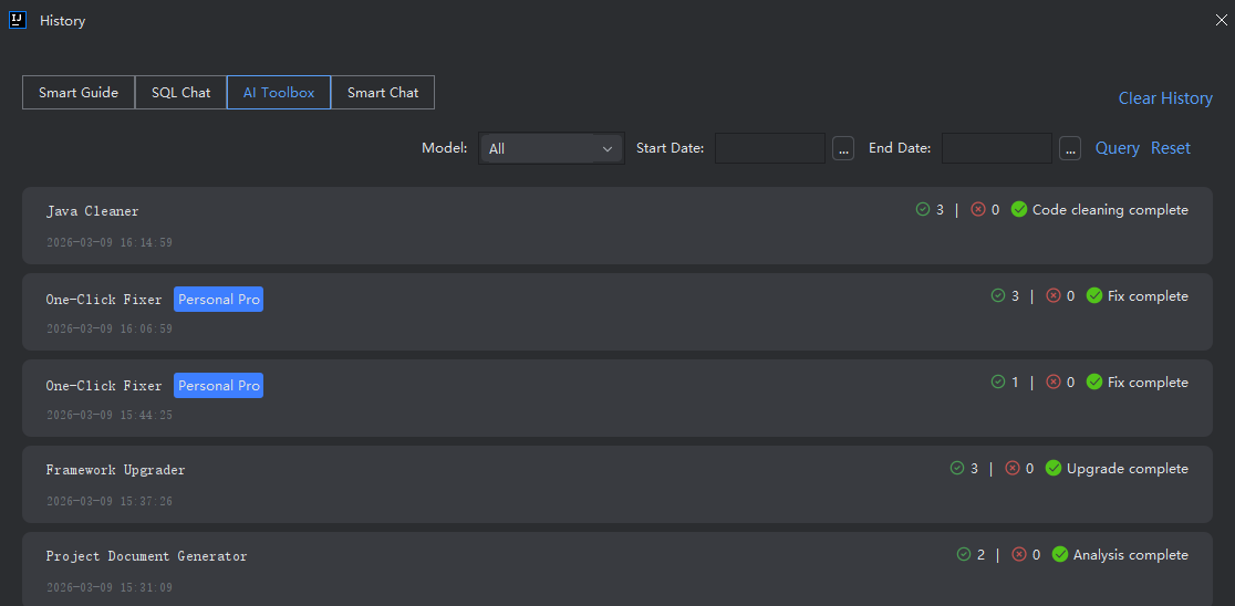 You can review and revisit previous operations or interactions through the session history.