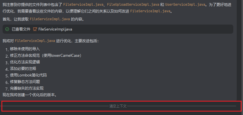 有上下文的情况下,在输入框输入符号“/”,然后选择“清空上下文”即可。如果当前会话没有上下文,则不会显示这个指令。