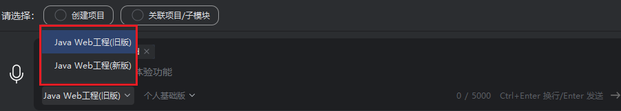 智能引导的Java Web工程现支持两种模式。两种模式在步骤一至步骤三的操作完全一致,主要区别体现在步骤四和步骤五。新版的模式,用户可获得更灵活、更聚焦任务目标的代码生成体验,同时支持前端项目的生成。