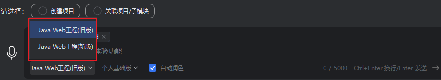 智能引导的Java Web工程现支持两种模式。两种模式在步骤一至步骤三的操作完全一致,主要区别体现在步骤四和步骤五。新版的模式,用户可获得更灵活、更聚焦任务目标的代码生成体验。