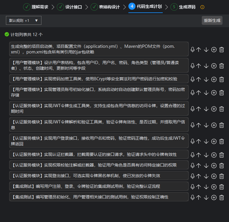 - 步骤五:直接生成完整的源码文件,不再基于模块划分。若有前端的需求,则会根据需求生成前端相关的代码文件。