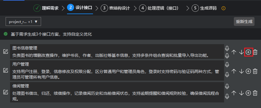 系统基于对您需求的理解,智能生成高效的API接口。如果您发现接口的基本信息或内容不准确,可以手动进行调整或新增接口信息。