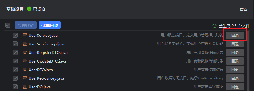 - 回退已合并的文件,单击“回退”按钮。