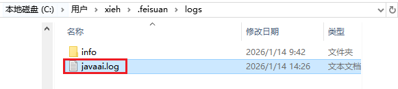 答:打开高级设置,查看高级设置中的本地存储路径,找到该路径下的.feisuan目录,打开logs文件,日志信息存储在javaai.log文件中。查看本地日志