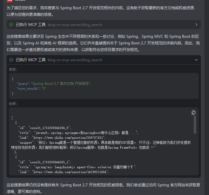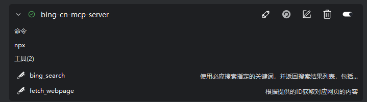 - 在MCP服务中已开启“必应搜索中文”服务。