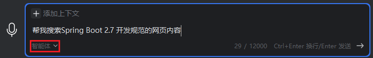 快速体验:可在智能会话的智能体模式中快速体验工具如何调用。