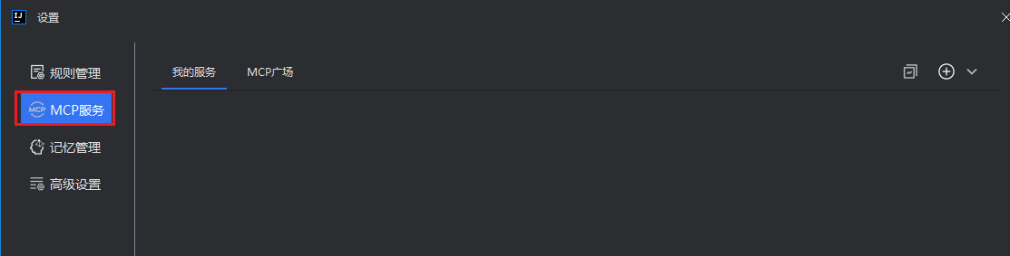 - 单击右上角的“设置”图标,然后选择“MCP服务”进入服务页面。