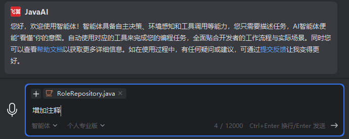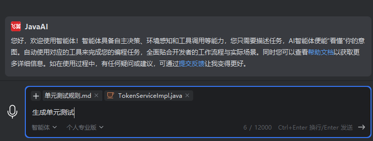 - 在使用智能会话中的智能体模式,选择文件,输入需求内容。