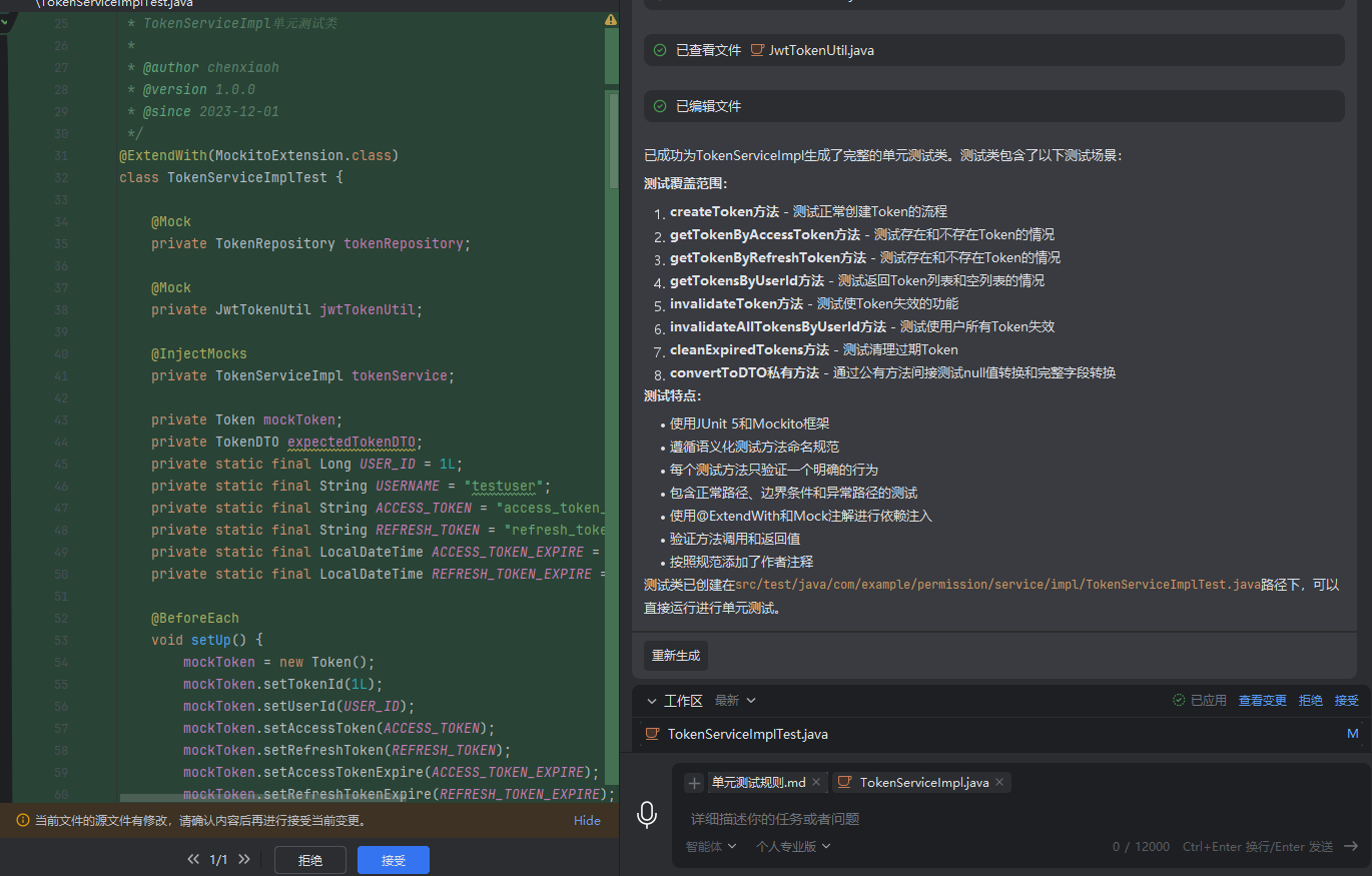 - 在描述区输入需求,然后查看文件,已按照规则生成。