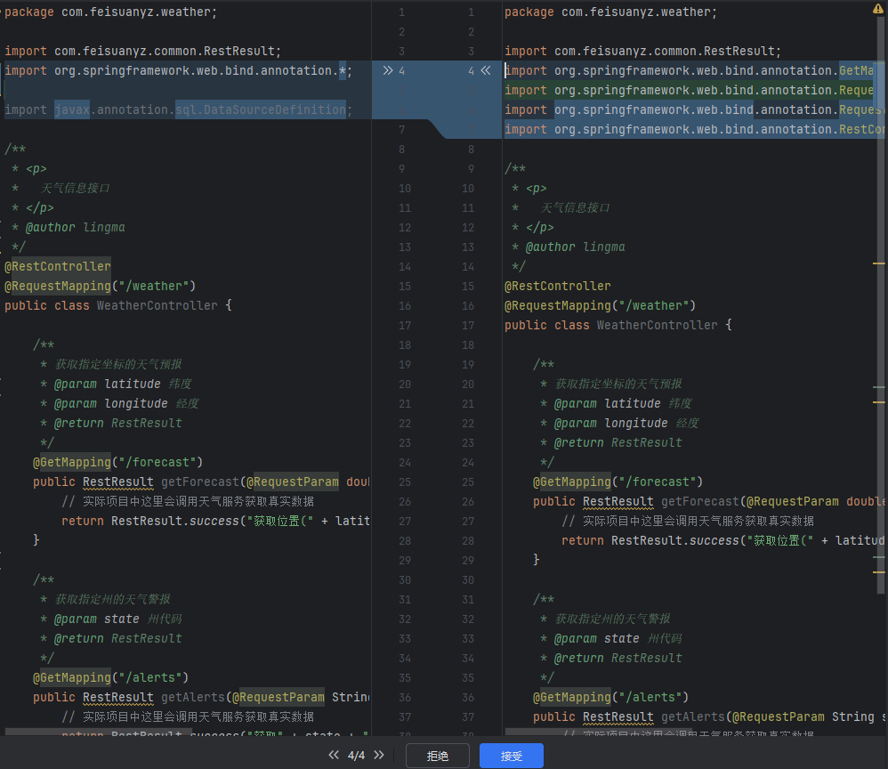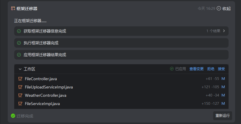 - 迁移完成,查看迁移后所改动到的文件内容,选择“接受”或“拒绝”即可。