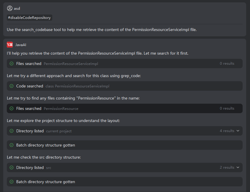 If your current task does not require analyzing code repository content, please associate the "Disable Code Repository" option. The system will skip repository retrieval, thereby improving processing efficiency.