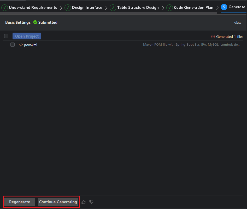 - If file generation fails, click Regenerate or Continue Generating.