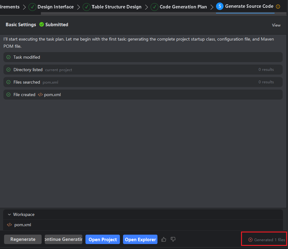 During the generation of source code project files, you may click Cancel at any time to terminate the generation of subsequent files. Please note that doing so may result in an incomplete project.