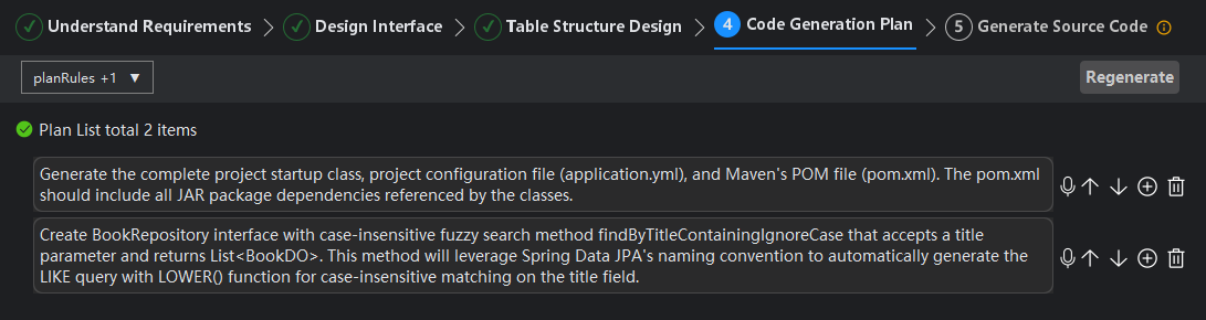 When selecting Java Web Project (New Version), step four will generate the corresponding code generation plan according to the rules. You can customize the rule content of the code generation plan in the rules.