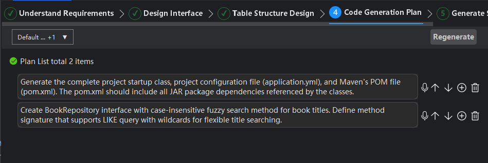 In the history records, you can understand which step the current task has progressed to through the task status. Double-clicking the task title or clicking the "Enter" button allows you to return to a specific node of that task and continue completing subsequent steps from there until the source code generation is complete.