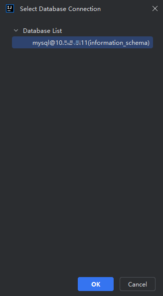 Note: The database connection here must be added using the Database plugin before it can be selected. Related operations can be viewed in the "Connecting to Database" section.