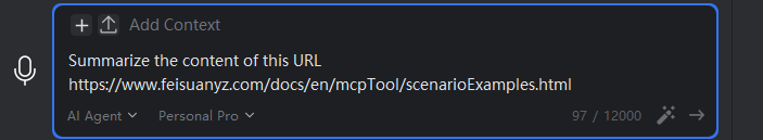 - In Smart Agent chat mode, enter the request: Summarize the content of this URL https://www.feisuanyz.com/docs/languages/help.html