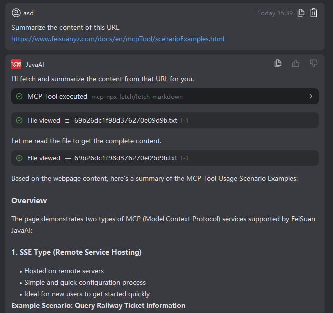 Scenario Two: Fetch Web Page Content Using a Local MCP Service