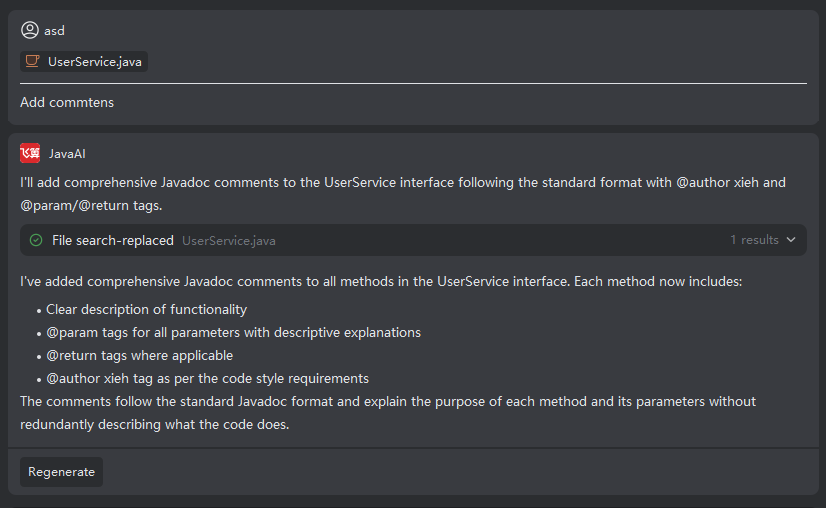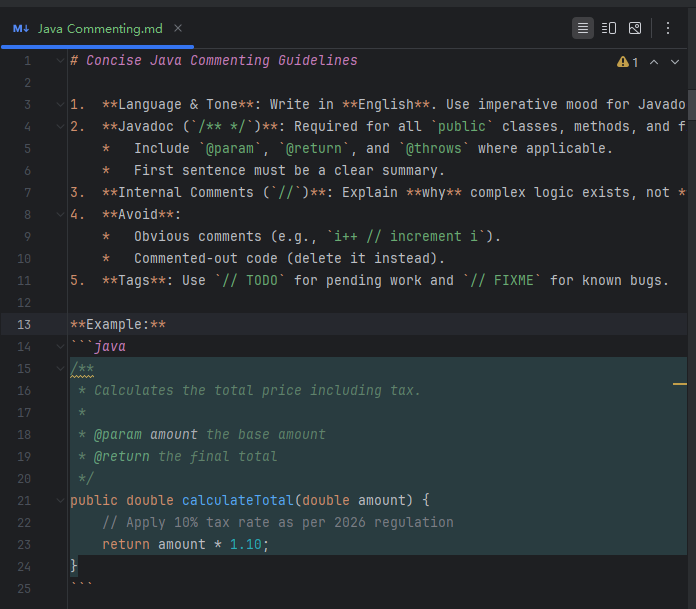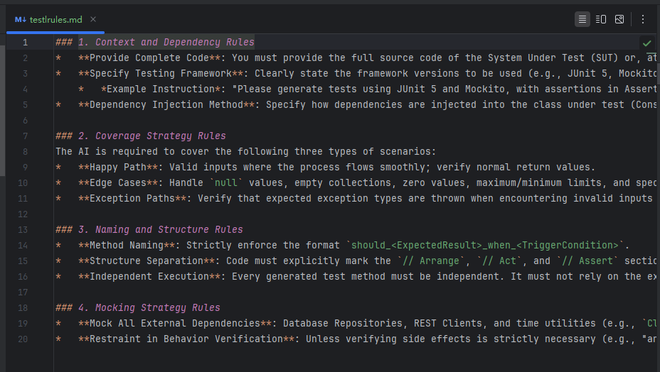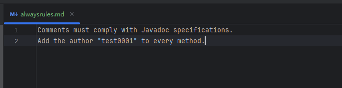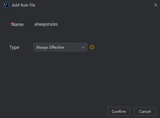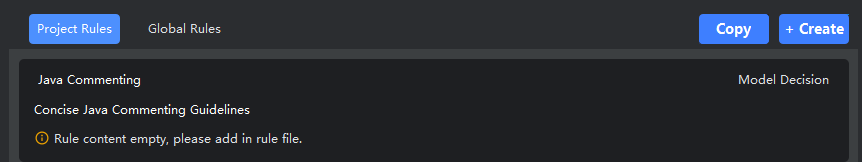 | Model Decision | In Smart Agent mode, the AI autonomously decides whether to apply the rule based on its description. Applied rules are shown in the response. | Scenario-specific rules (e.g., only for unit test generation or comment writing). |