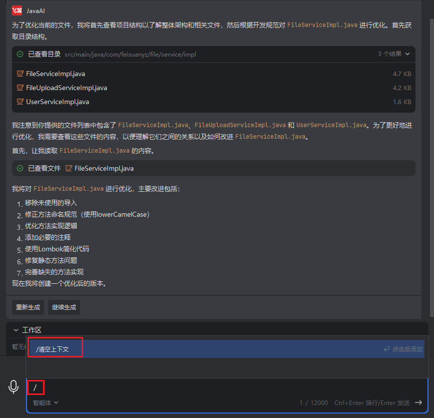 有上下文的情况下,在输入框输入符号“/”,然后选择“清空上下文”即可。如果当前会话没有上下文,则不会显示这个指令。