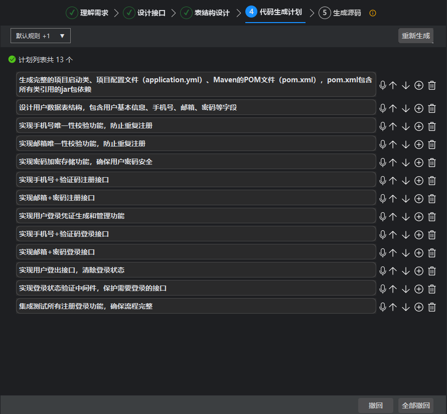 - 步骤四:代码生成计划,展示计划数量和实现功能。