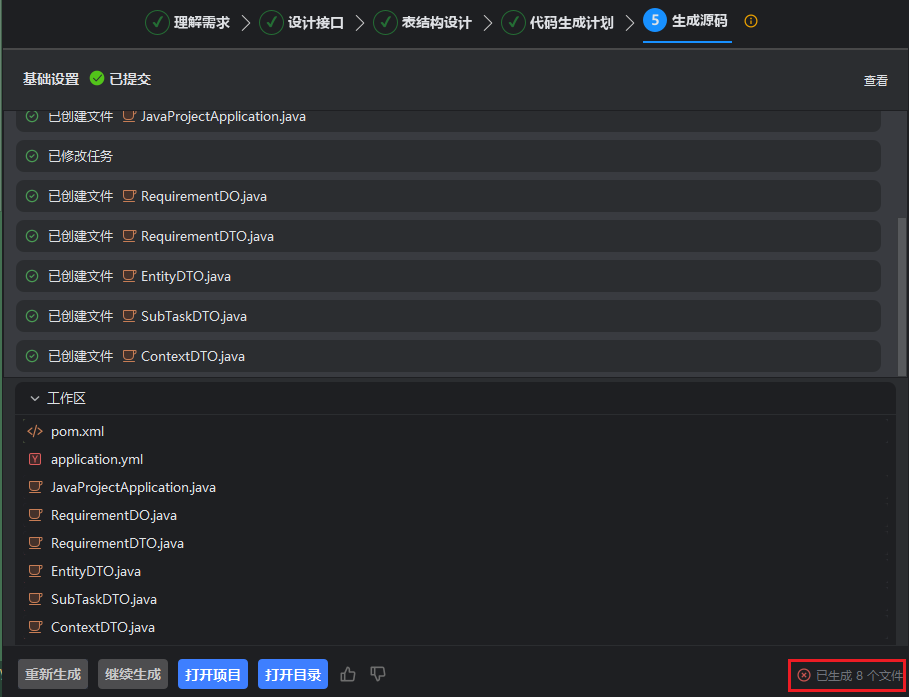 在生成源码项目文件的过程中,您可以随时点击“取消”以终止后续源码文件的生成,但可能会导致项目不完整,请注意。