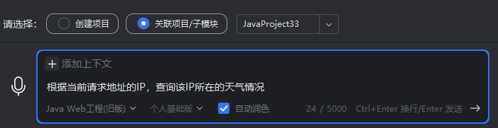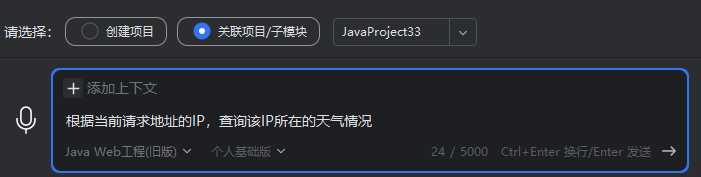 针对当前已打开的项目是父子模块的项目时,您可以选择合并到当前项目的父模块还是子模块。如果您选择了对应的子模块,则生成源码会合并到对应的子模块中。如果没有选择子模块,则模型会根据对需求上下文的理解及对模块的解析,若有合适的子模块,则会合并到该子模块中或者src目录下。若模型检测到都没有,则会新建一个模块存储生成源码的文件内容。