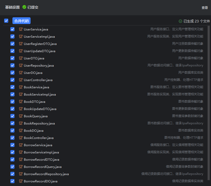 - 然后勾选所需的文件,单击“合并代码”,合并后,系统会把当前模块已勾选的文件自动进行合并,合并成功显示合并的文件及位置。