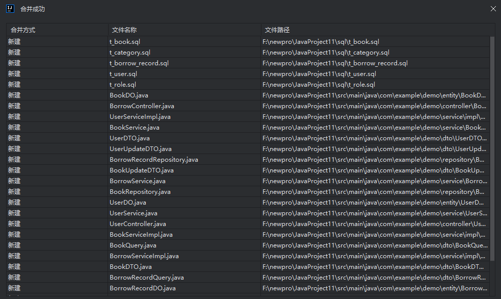 说明:如果看不到合并的文件,请刷新项目缓存,即可在对应的路径下看到合并的文件。