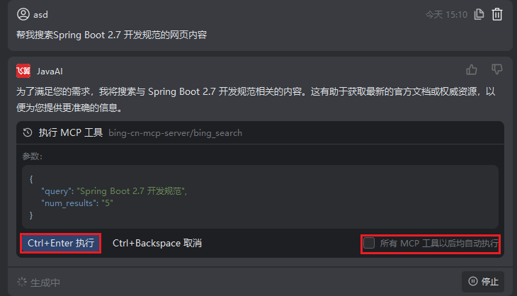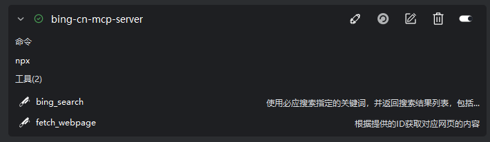 - 在MCP服务中已开启“必应搜索中文”服务。