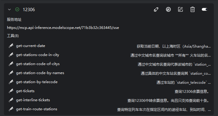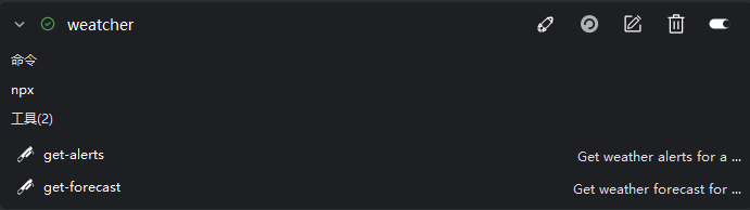 - 在“我的服务”中,显示已安装的服务,安装成功,展开可以看到该MCP服务的工具列表说明。