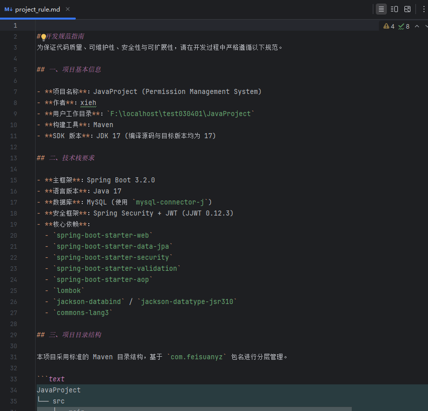全局规则,所有项目都会生效。您可以在“全局规则”列表下创建对应的规则。设定项目级的通用规范,如编码风格、偏好格式、默认的回答角色等。
