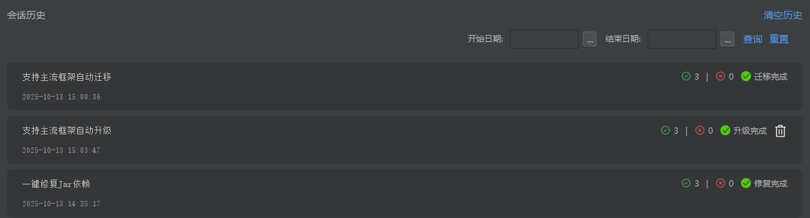 查看历史的记录,单击对应记录,可查看历史的会话内容。